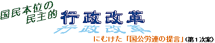 その82年の「提言」をもとに、今日の行財政の実態をふまえて、現時点の 行政改革の課題をあらためて整理したのがこの「第1次案」です。私たちは、国 民生活重視の行財政にかえていくためには、そのことをめざす労働者、勤労国民 の幅広い運動が大切だと考えます。そのような運動のうねりを作りだしていく一 つの契機として、私どもの作成したこの「第1次案」をご検討いただき、率直な ご意見でより豊かなものにしていただきますとともに、国民本位の行政改革の実 現にむけて共同の取り組みへの積極的なご参加を心からお願い申し上げます。
