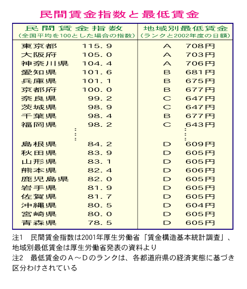 第2に、男女間、地域間、産業間、企業規模間、雇用形態の違いなどによる格差是正のとりくみを制度的にも労使関係においても重視することとし、最低賃金の改善(表3)や、非正規労働者の「均等待遇」を求める制度闘争と一体で公務員賃金闘争を展開していきます。